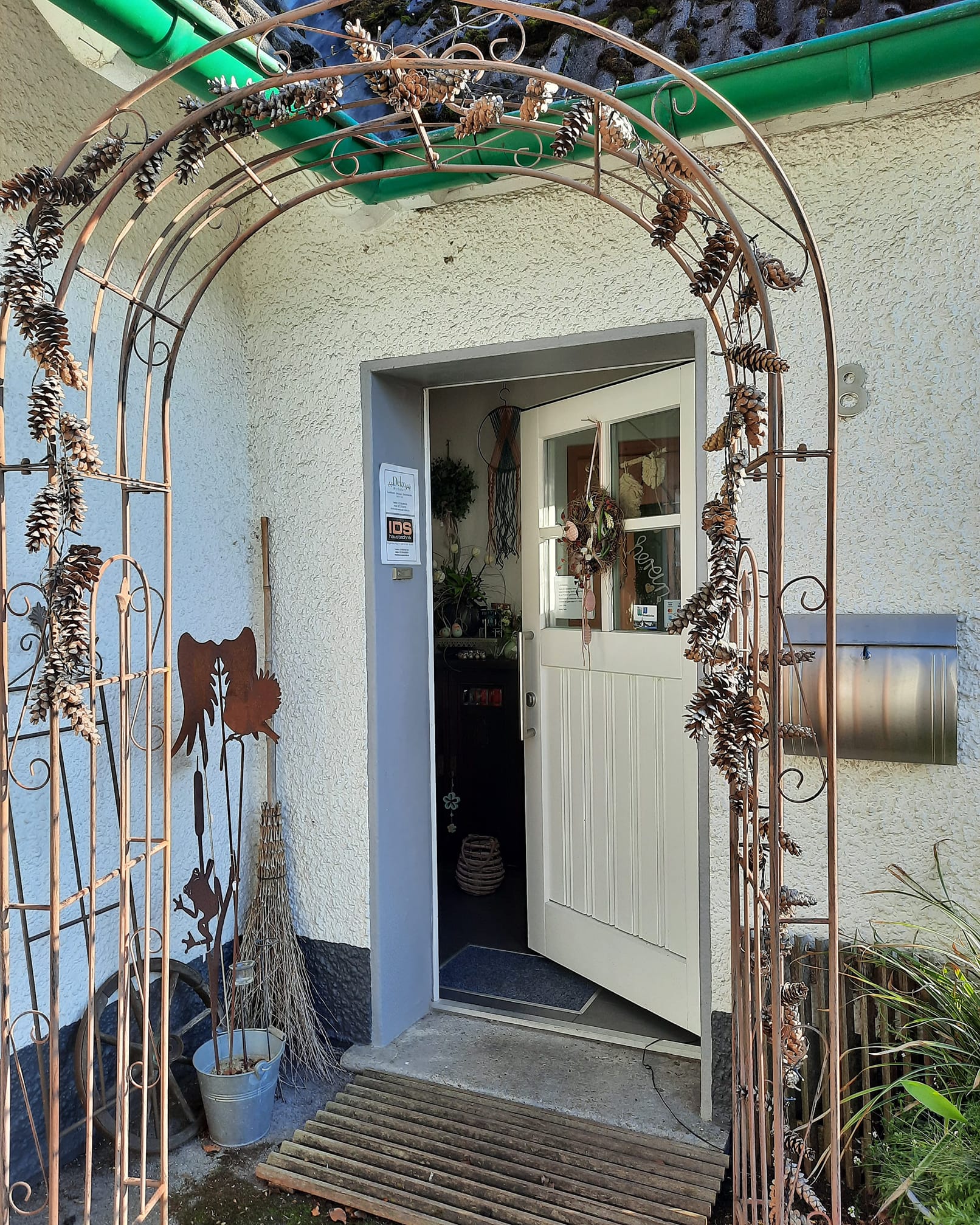 Bitte parken Sie an der Straße vorm Haus und gehen die Steintreppe am Haus hoch zum Geschäft. Manche Navis führen von hinten ans Grundstück heran, dort sind unsere Parkplätze aber sehr begrenzt.